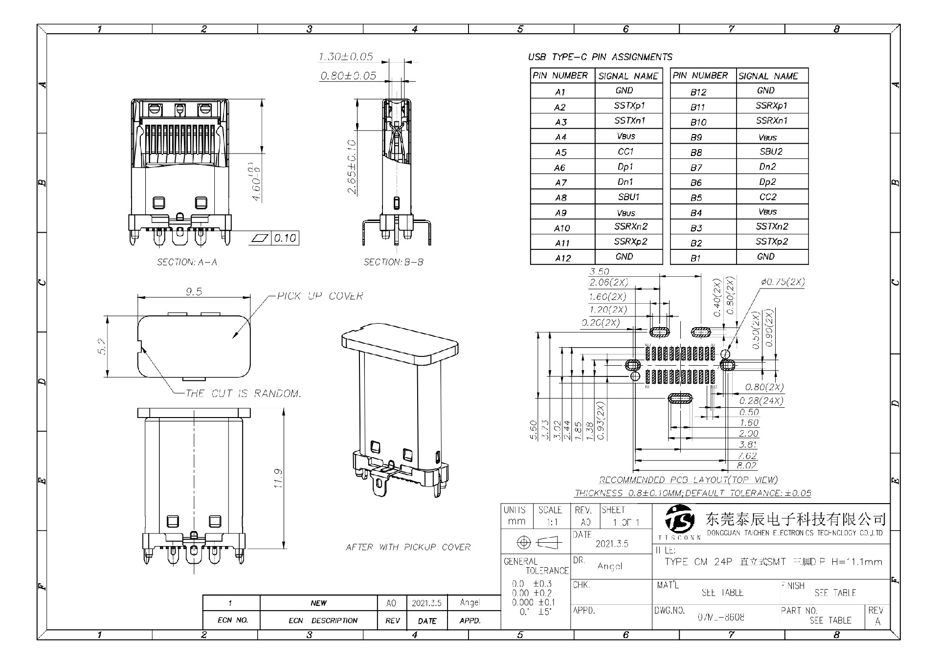 07ML-8608 TYPE CM 24P 直立式SMT 三腳DIP H=11.1mm